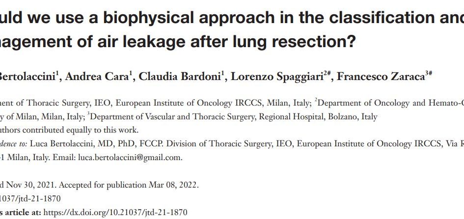 New paper: Should we use a biophysical approach in the classification and management of air leakage after lung resection?