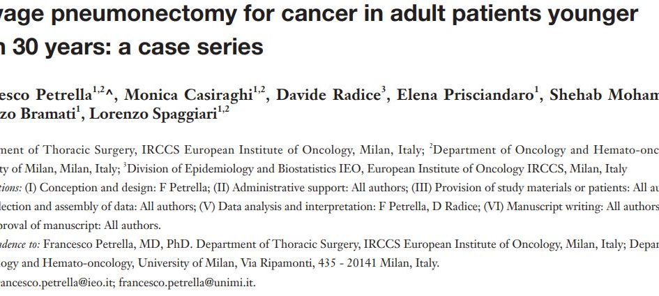 NEW PAPER: Salvage pneumonectomy for cancer in adult patients younger than 30 years: a case series